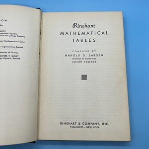 Rinehart Mathematical Tables By Harold D. Larsen Hardcover Book
