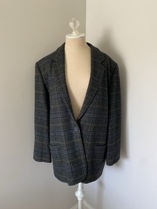 Vintage 90's Lands End Gray Plaid Single Button Wool Blazer Jacket 16