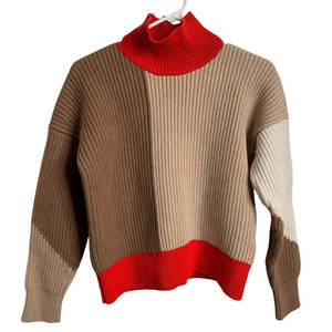BOSS HUGO BOSS Womens Falisha Turtleneck Sweater S Colorblock Wool Chunky Knit