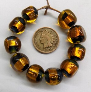 20 Pc Venetian Amber Style Lamp Silver Foil African Trade Beads # L1455 READ !