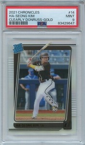 PSA 9 2021 CHRONICLES CLEARLY DONRUSS GOLD #14 HA-SEONG KIM RC **JERSEY #7/10**