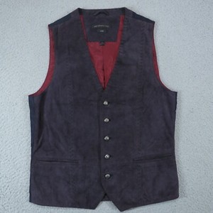 John Varvatos Vest Mens Small Goat Suede Linen Buckleback Satin Lined Navy Luxe