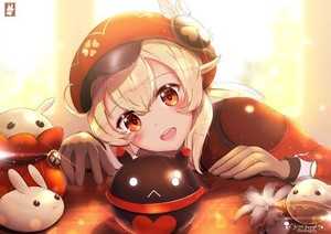 Anime girls open mouth genshin impact klee blonde Playmat Game Mat Desk