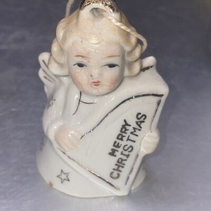 Vtg White Ceramic Angel Stars Merry Christmas Harp Bell Ornament 2.25" Japan EUR 7,760 biedingen2d 4u 25m