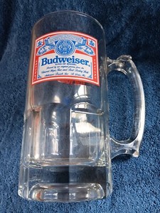Vtg BUDWEISER HEAVY GLASS 32 Oz Beer Mug BIG THIS BUDS FOR YOU Thumb REST EXC