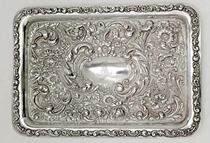 Antique Robert Pringle & Sons Sterling Silver Repousse Tray London Mono