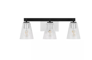 H D Westbrook 3-Light Matte Black Modern Bathroom Vanity Light w/ Chrome Accents