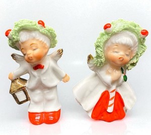 Vintage 3 Piece Choir Girl Boy Ceramic Candle Holder MCM Christmas Figure READ