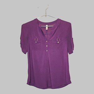 PerSeption Concept Women's Small Eggplant Roll Tab Sleeve Button Accent Top
