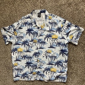 Corona Shirt Men's 3XL Graphic Crown Imports Button Up Collar Beer Hawaiian