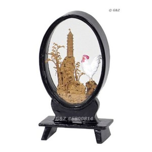 Small Egg-Shape Cork Carving with White Rooster & Pagoda (5800814)