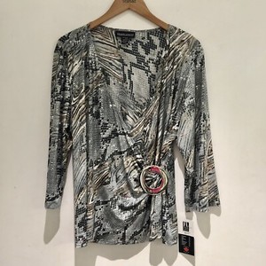 Bnwt Frank Lyman Faux Wrap Top Size 22 Silver Grey Animal Print Sequins Cruise
