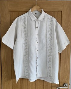 BOHIO Mens Linen Shirt XL Off White Ecru Embroidered Front