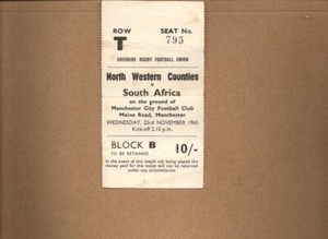 Used Rugby Union Ticket - North Western Counties v South Africa 23.11.1960