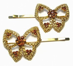2 BUTTERFLY AUSTRIAN RHINESTONE CRYSTAL HAIR CLIPS BARRETTE BODYPIN CINNAMON