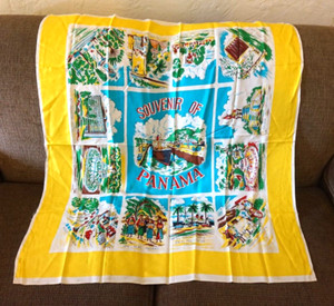 Souvenir of Panama Map Polyester Scarf Travel 1950s