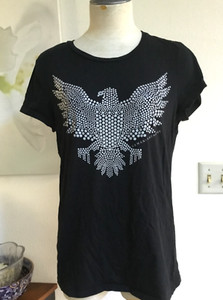 ARMANI EXCHANGE Women's Basic Sequined Eagle T-Shirt Short Sleeve Black L
