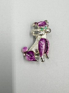 Vintage Silver Colored & Purple Dog W/ Green Eyes Lapel Pin Brooch READ