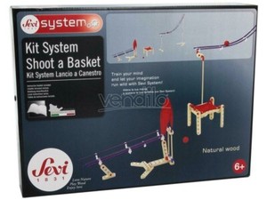 NEW Sevi System Kids Engineering Science Kit Shoot A Basket~ Natural Wood for 6+