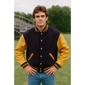 DeLong Vintage Bomber Varsity Jacket Size 40 Purple Yellow Pockets Wool Men's