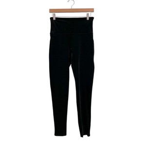 Spanx Black Velvet Leggings Size Large Wide Band Waist Slimming