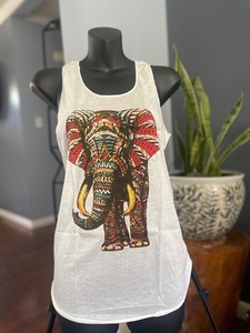 Women’s Sleeveless Elephant Print Tank Top Boho Festival Shirt 100% Polyester