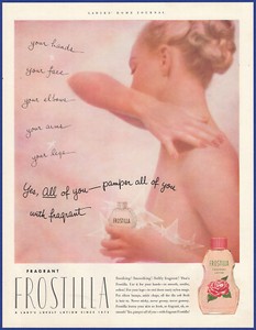 Vintage 1952 FROSTILLA Fragrant Body Lotion Cosmetic Ephemera 1950's Print Ad