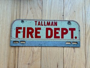 Vintage New York Tallman Fire Department License Plate Topper