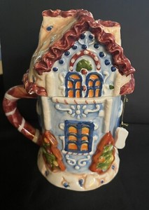 Holiday Seasons Painted Ceramic Covered House Gingerbread Coffee Mug Christmas