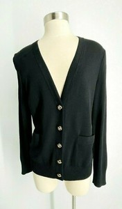 St John Caviar Cardigan Top Black Wool Blend Women Size M