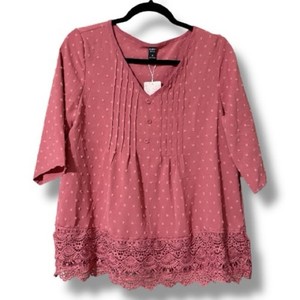 CATHERINES women’s plus size 1X 18/20W pleated front v neck button front blouse