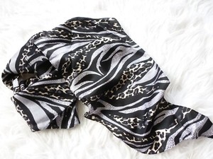 Vintage Collection XIIX Silk Black White Animal PrintOblong Long Scarf 62" x 8"