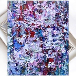 Abstract painting-3 impasto Mixed media Original painting oil acrylic 5.8x3.8 in