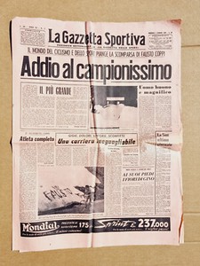 GAZZETTA DELLO SPORT 3 JANVIER 1960 MORT DE FAUSTO COPPI ADIEU CAMPIONISSIMO