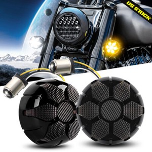 DOT Dual LED Headlight Projector Amber Honeycomb For Harley Road Glide 2015~2023