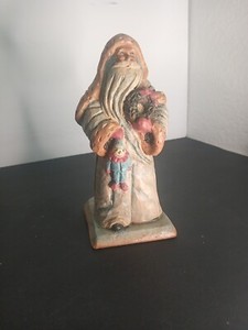 Hand Painted Old World Santa With Wreath Figurine 9” Christmas Decor 80s Vin