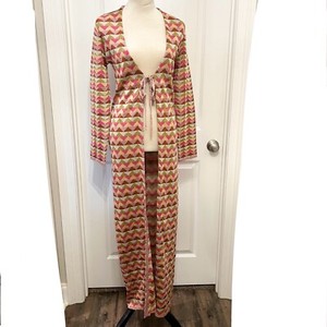Happy Sheep Anthropologie Pink Earth Tone Sparkle Chevron Duster Cardigan NWT- M