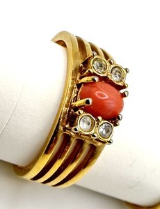 Vintage 1981 Avon Sea Treasure Bands of Gold Coral Center Stone Ring Size 7.5