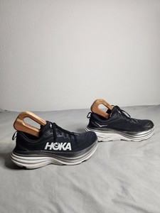Hoka One One Bondi 8 Shoes Womens Size 12B Black White Sneaker 1127952 BWHT EUC