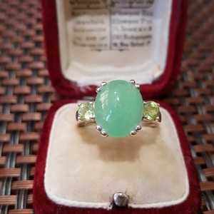 925 Sterling Silver Ring, Brazilian Emerald And Topaz Band, Size K.5 US 5.5,Gold