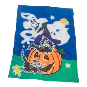 Vintage 2000 Evergreen Mini Halloween Jack O Lantern Ghost Cat Flag 17” x 12.5”