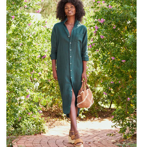 Frank & Eileen Rory Washed Linen Maxi Shirtdress In Forest Green Size Medium
