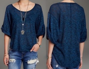 FREE PEOPLE BEACH Sweater Womens Small Marled Blue Cuffed Short Sleeve Nani Tee