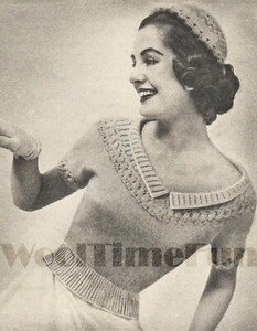 Vintage Crochet Pattern Womens 1950s Glamour Off-Shoulder Scoop Neck Top.